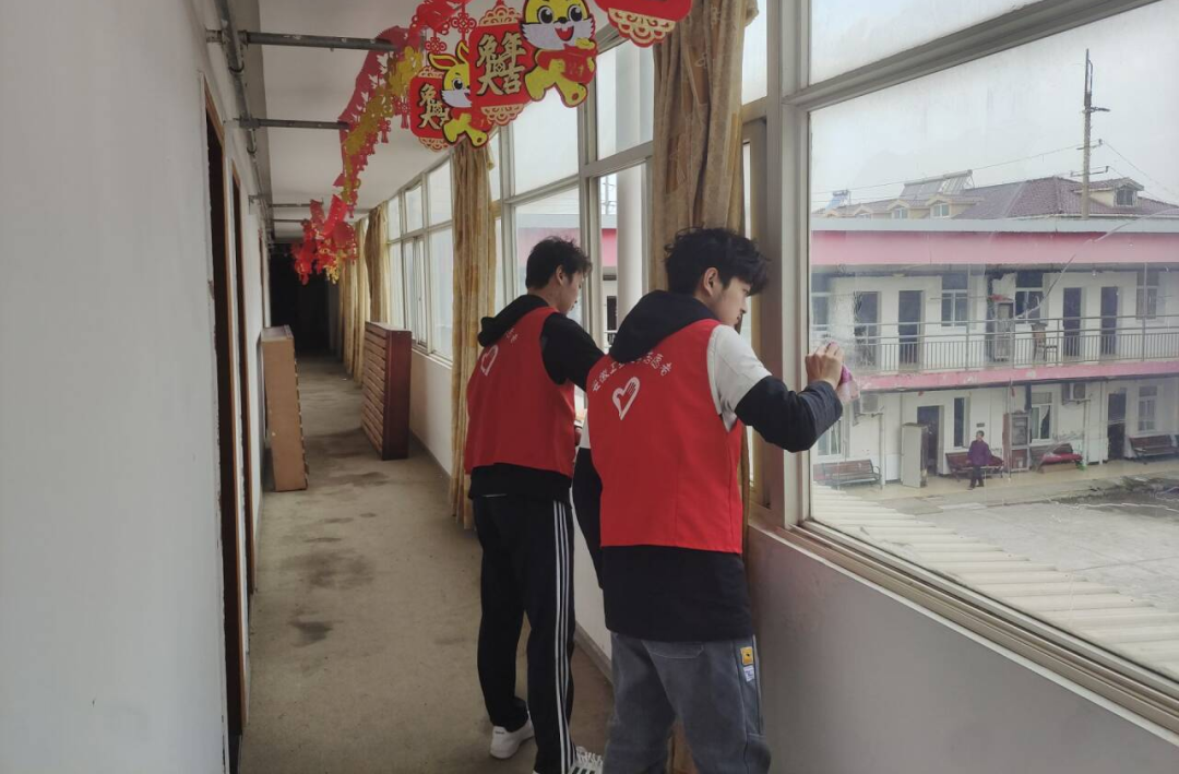 上午9点,志愿者一行人抵达敬老院,在工作人员的具体指导下,志愿者们深入了解老人们的生活习惯与注意事项,随后对敬老院开展全面清扫工作,包括擦拭窗户、拆洗风扇空调、整理老人房间等,为老人们营造一个干净舒适的生活环境。整个敬老院焕然一新,洋溢着温馨的氛围。志愿服务结束后,院长邀请志愿者和老人们一起共进午餐。餐桌上,志愿者们亲切地与他们进行交流,认真倾听他们的生活和工作经历,了解他们的身体健康状况,送上关心与祝福。