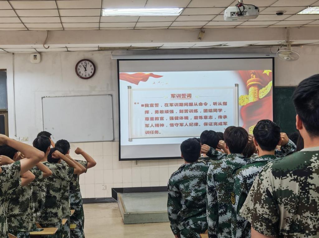 学院党委副书记王颖之首先致辞,她强调军训是新生锤炼意志、筑牢品格的“基础工程”,寄语新生要做到严守纪律、强健体魄、传承军风,为未来投身国家基建事业打下坚实基础。随后,新生辅导员黄雨晴就军训相关事宜向新生作具体说明,她强调,军训能帮助新生快速完成从高中生到大学生的角色转变,为后续专业学习与集体生活筑牢根基。最后,大会进入庄严的宣誓环节。全体新生高举右拳,以洪亮的声音庄严宣誓,誓言铿锵有力,回荡在运动场上空,展现出2025级新生昂扬的斗志与坚定的信念。
