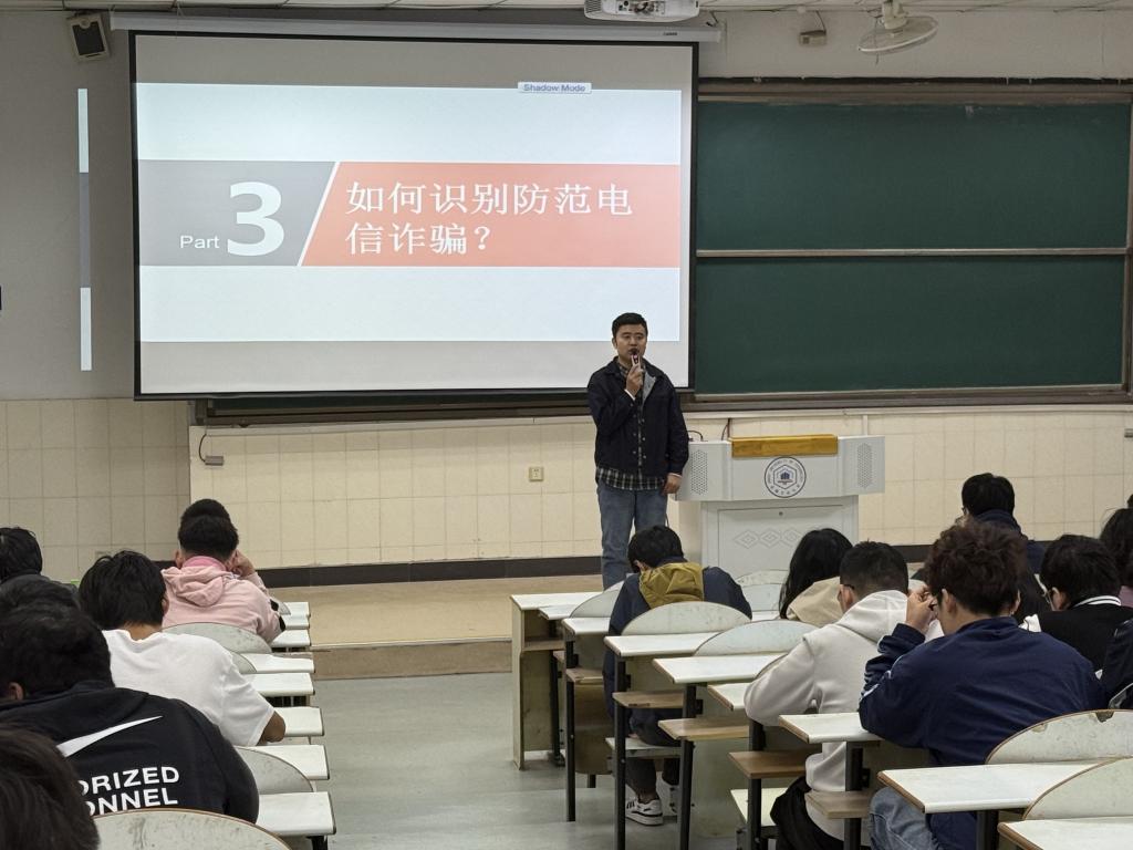 会上,辅导员张腾飞紧密结合当前高发的电信网络诈骗案例,进行了深入浅出地讲解。重点剖析了刷单返利、冒充熟人、冒充客服和执法人员、买卖游戏账号及装备、网络交友等多种针对大学生群体的常见诈骗手法,详细讲解了其作案特点和识别技巧。要求同学们务必下载并启用“国家反诈中心”APP,关注官方预警信息,牢记“三不一多”原则:即不轻信、不透露、不转账,多核实,切实守护好个人财产和信息安全。