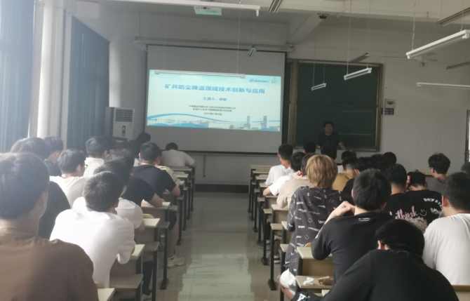 李刚教授首先介绍了矿山职业危害和深井热害与地热资源现状,然后从矿井职业危害、粉尘防治、深井热害治理和未来发展趋势四个方面进行学术报告,详细介绍了矿井典型粉尘运移扩散规律、粉尘理化特性与润湿机制、矿井粉尘净化技术装备及应用、热害控制与地热资源利用协同技术及应用等内容,围绕矿井防尘和深井热害控制全面阐述了相关技术装备的创新与应用,并对深井开采粉尘与热害职业危害防控技术进行展望。会后,李刚教授与会师生进行互动交流。本次报告会对矿井防尘降温领域技术创新与应用进行了全面介绍,极大地拓展了与会师生的视野,取得了良好的学术交流效果。