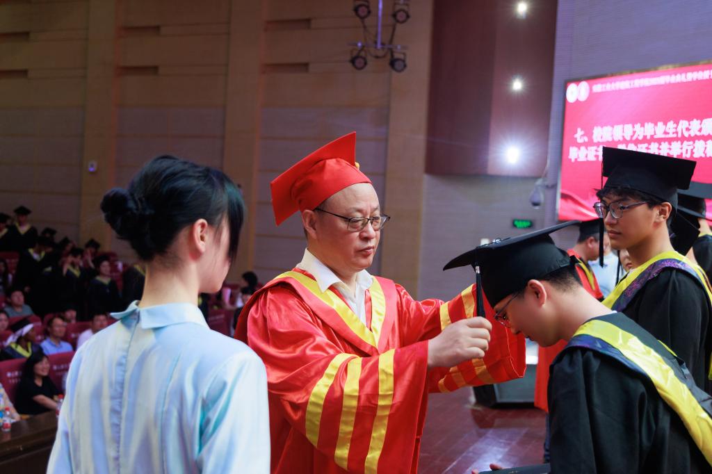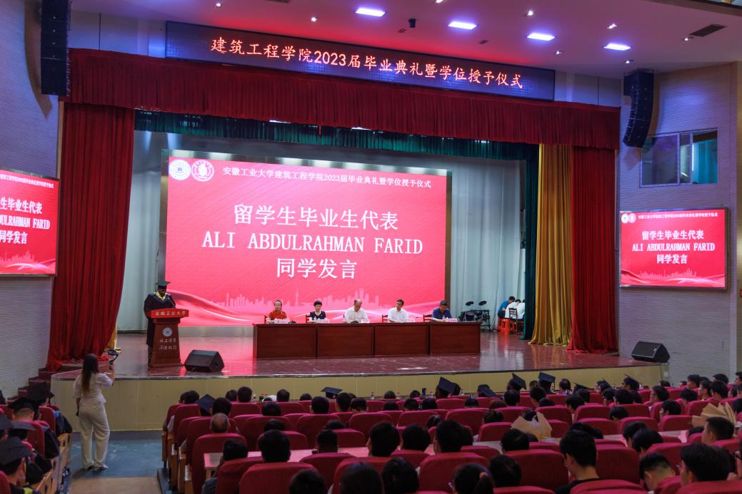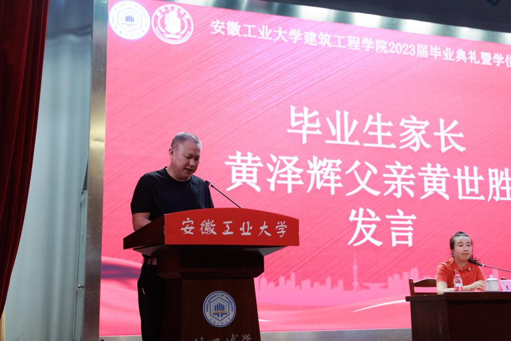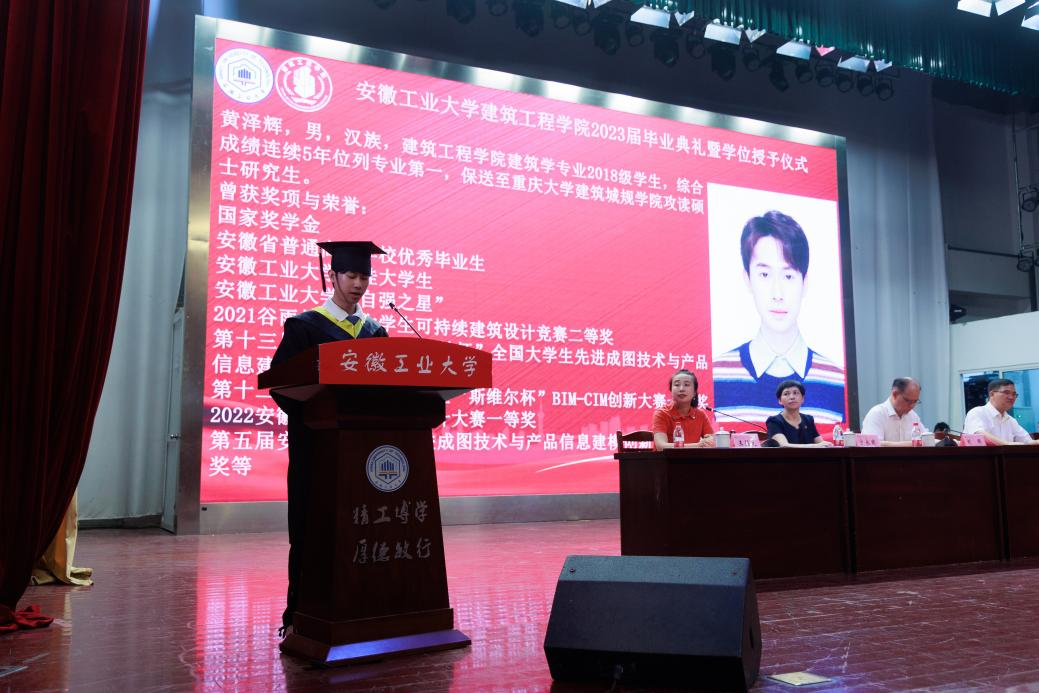 典礼上,本科生代表2018级建筑学专业黄泽辉同学回顾了在工大五年的求学时光,积极践行“今天我以母校为荣、明天母校以我为荣”的青春誓言,努力书写精彩人生华章。研究生代表2020级冶金环境安全工程专业胡俊杰同学结合自身在工大校园学习、科研的时光表达对于母校的热爱之情。留学生代表ALI ABDULRAHMAN FARID由衷感谢母校的培养,在学习过程中学会了勇敢与坚强、自信与务实。在校生代表2020级建筑学专业本科生陈国华向即将毕业的学长学姐们给予的帮助表达了感谢,并表述将努力用自身的青春和智慧续写辉煌的篇章。毕业生家长代表黄世胜先生向学校及学院老师辛勤付出致以崇高的敬意和最诚挚的感谢,衷心祝愿学校及学院发展越来越好。教师代表陈德敏老师在发言中回顾了毕业生在校学习的点点滴滴,积极鼓励毕业生们以“积跬步致千里”的追求,以全新的姿态适应人类社会发展需求。