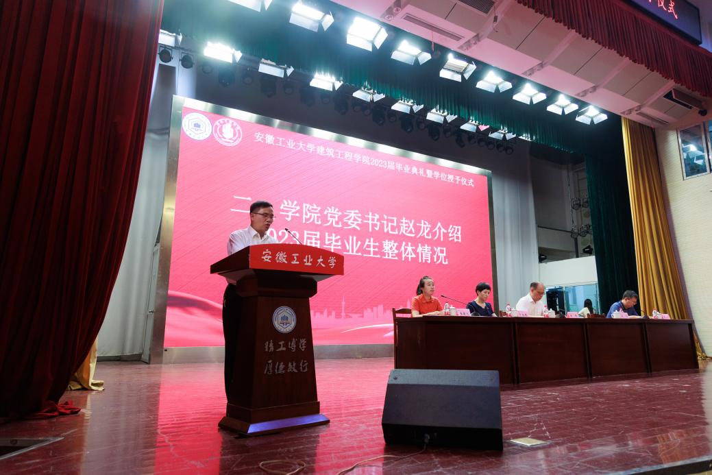 伴随着雄壮的国歌声,必赢线路检测30032023届学生毕业典礼暨学位授予仪式正式拉开帷幕。必赢线路检测3003党委书记赵龙介绍了学院2023届毕业生整体情,副院长陈德鹏宣读了2023年安徽省普通高等学校优秀毕业生、校优秀毕业生、毕业生考取研究生录取率优秀班级、校友联络员名单。
