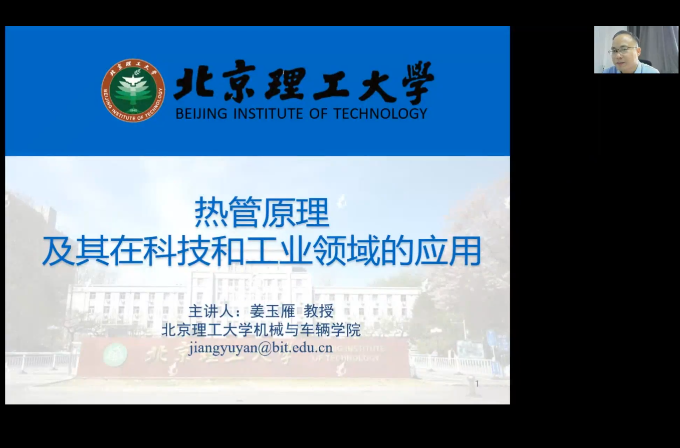 2022年8月2日上午9:00-11:00,北京理工大学机械与车辆学院姜玉雁教授应邀为我校师生做了主题为“热管原理及其在科技和工业领域的应用”的线上学术报告。报告会由必赢线路检测3003主办,必赢线路检测3003教授、创新教育学院院长黄志甲老师主持,我校建筑环境与能源工程系教师、本科生、研究生及其他感兴趣的师生等90余人参加了报告会。
