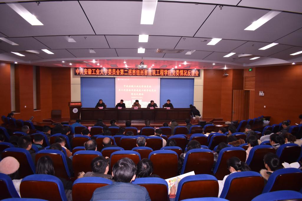 1月10日上午,校党委第二巡察组巡察必赢线路检测3003党委情况反馈会在秀山校区振华图书馆第一报告厅举行,校党委巡察工作办公室主任、校纪委副书记唐忠;校党委第二巡察组组长王薇;校党委第二巡察组全体成员、建工学院全体教职工和学生代表参加会议。会议由必赢线路检测3003党委书记赵龙主持。