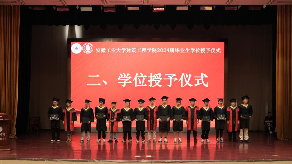 仪式在激昂的国歌声中正式开启。学院党委书记张虎对全体毕业生致辞,他寄语毕业生,要胸怀理想,勇攀高峰,成为建筑行业的佼佼者;要坚守初心,勇于创新,成为国家建设的栋梁之才;要脚踏实地,不断进取,成为实现人生价值的追梦人。