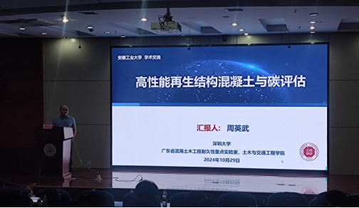 周英武教授首先系统地分析了再生骨料混凝土现阶段发展状况,指出目前存在的一系列问题和挑战,强调再生骨料在土木工程中的高值化、低碳化研究对于整个行业长远发展的重要性。随后,他详细地介绍了团队近年来在再生混凝土骨料物理化学改性、再生骨料制备高性能混凝土结构以及再生混凝土全寿命周期碳效应评估等方面开展的研究工作,取得的主要研究成果。