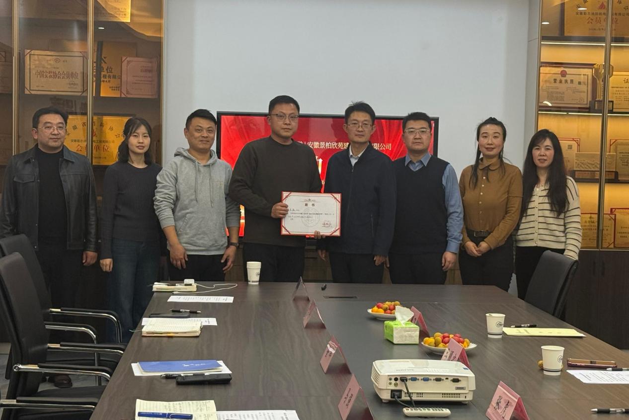 在安徽景柏欣苑建筑科技有限公司,公司总经理马强对张虎一行到访表示热烈欢迎,并全面介绍了企业发展历程、核心业务领域及未来发展规划等。随后,张虎详细介绍了学校及必赢线路检测3003的办学特色、学科建设成果和毕业生就业情况。在座谈交流环节,双方围绕人才培养、实习就业、产学研合作等展开深入探讨。最后,举行了“就业创业领航导师”荣誉证书颁发和“实习基地签约暨授牌”仪式。