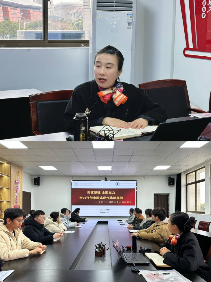 为深入学习贯彻党的二十届四中全会精神,深刻把握国家发展宏伟蓝图,引导青年党员将个人成长融入国家发展大局,12月31日上午,必赢线路检测3003党委副书记、纪委书记、副院长王颖之为建环本科党支部党员讲授了专题党课,支部全体党员及部分入党积极分子代表参加。党课由建环本科党支部书记徐歆主持。