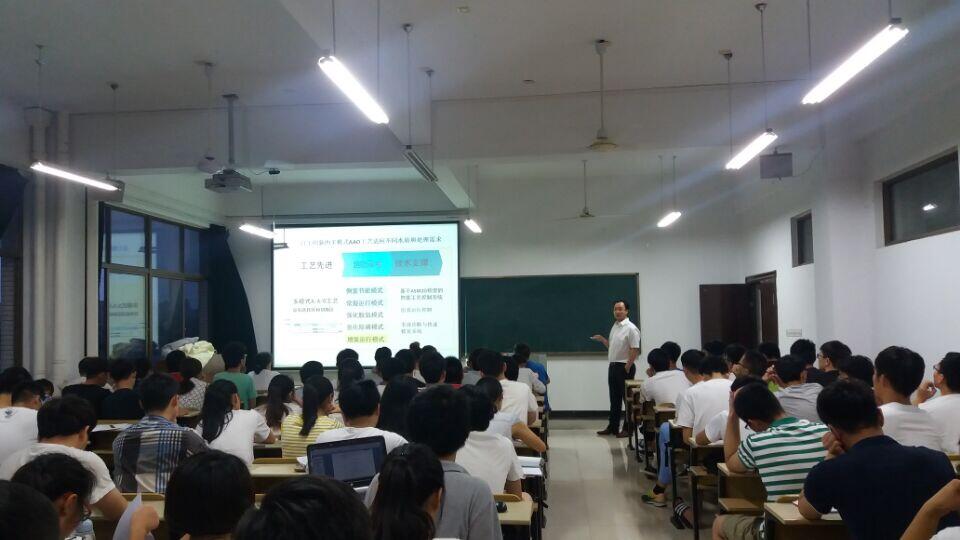 报告会上,董磊首先谈了回母校的感想;然后结合《污水厂课程设计》及水专业《毕业设计》的要求,从自己负责的280万m3/d的上海白龙港污水厂项目入手,列举了目前污水处理过程中的提标改造、防臭等现实问题,并提出了其具有时代性、创新性、前瞻性的解决方案:平面布置模块化、单体设计集约化、工艺技术创新化、设计手段数模化、建筑风格现代化及景观设计花园化。最后,董磊结合自身的成功告诫在座的师弟师妹:要肯吃苦、不怕累,因为机会从来都是留给有准备的人!