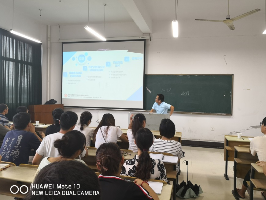 王浩作了题目为既有公共建筑绿色化节能改造与案例分析。报告从既有公共建筑能耗现状、不同类型建筑能耗、目前存在的问题、常见的节能改造技术、节能改造步骤等几方面展开,并结合实际项目案例介绍了改造前后的能耗对比情况。会后学生就报告内容与王浩进行了交流讨论。此外,大四学生就即将面临的择业就业等问题也向王浩进行深入的交流。本次报告内容充实全面,与实际工程案例结合,拓宽了学生的知识面,并使学生认识到理论与工程实际存在的差距,为后期的专业课程学习及毕业设计工作开展奠定了良好的基础。